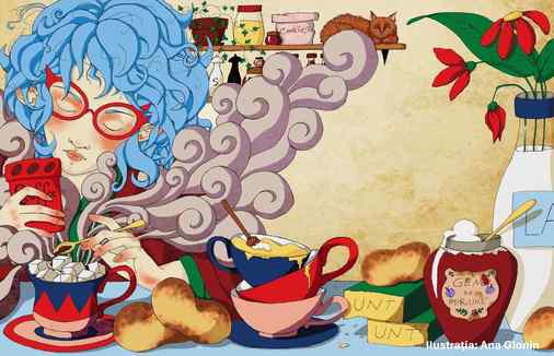 Îmi dau lacrimile de durere, dar sunt mulțumită că l-am eliminat din viața mea pe intrus. Cu ceva mai mult curaj acum, mă îndrept spre bucătărie. Copiii, dragii de ei, cum mă vor primi ei cu brațele deschise, cu micul dejun și cafeaua pregătite special pentru mine… Zâmbesc numai la bucuria acestui gând. Încep să fredonez o melodie și… dau nas în nas cu o masă vraiște pe care stau claie peste grămadă castroane, furculițe, șervețele mototolite, caiete de teme fără teme, manuale, căni murdare și pixuri împrăștiate. Sub masă nici nu îndrăznesc să mă uit.