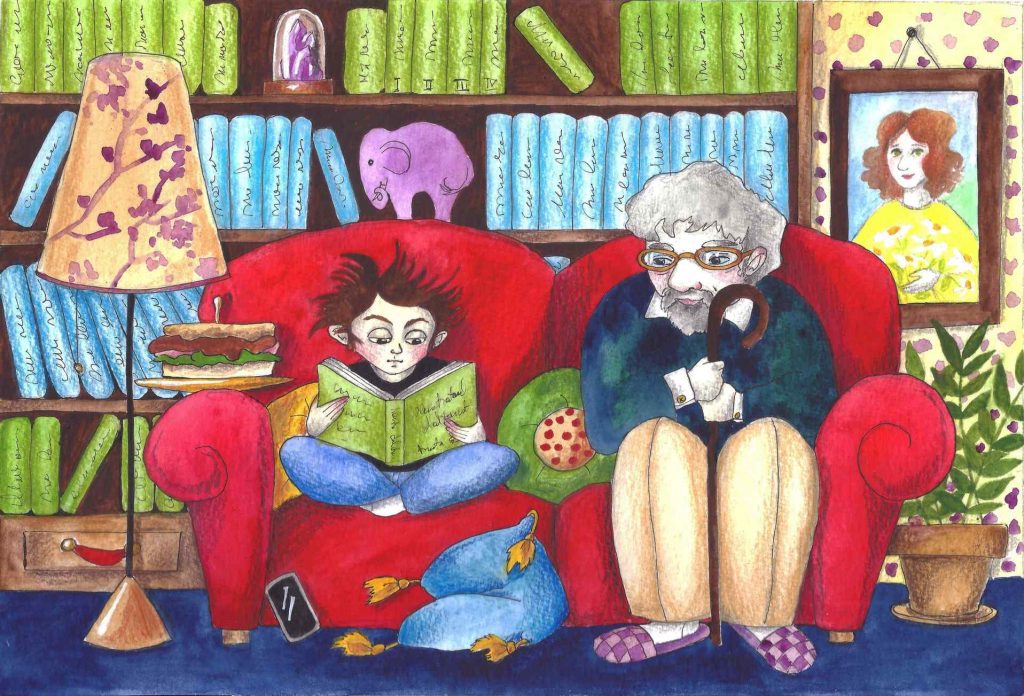 Paco traîne ses pieds dans la direction de l’étagère et commence à étudier les titres. Après un certain temps il choisit un livre, revient sur le canapé et commence à lire. Le canapé n’a plus protesté cette fois-ci. Les pages commencent à tourner toutes seules devant les yeux du garçon, comme par magie.
