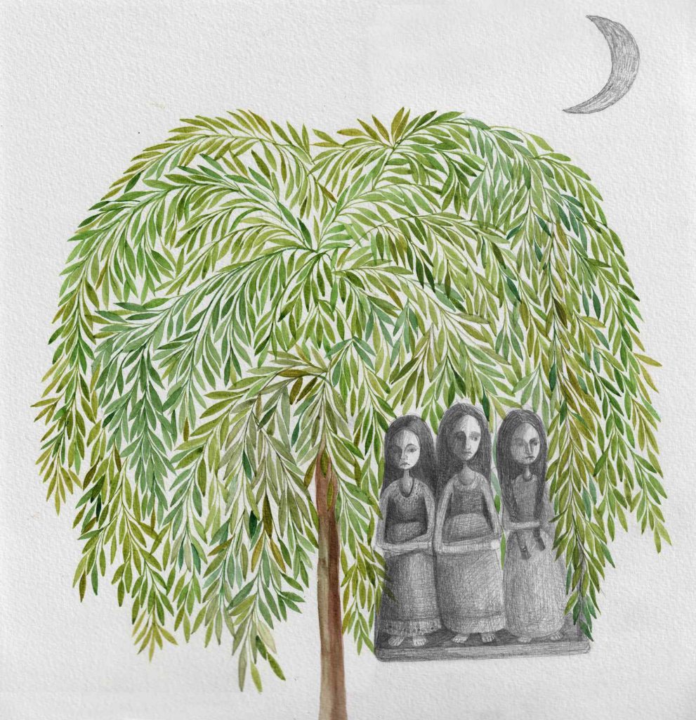”… despre trei surori care fugiseră de-acasă de răul mamei vitrege și care își găsiseră adăpost în scorbura salciei. Și despre cum mama vitregă – vrăjitoare în toată regula – le blestemase să nu poată ieși de acolo decât noaptea și numai sub formă de adiere, zgomot sau cântec. Asta până în ziua în care…”